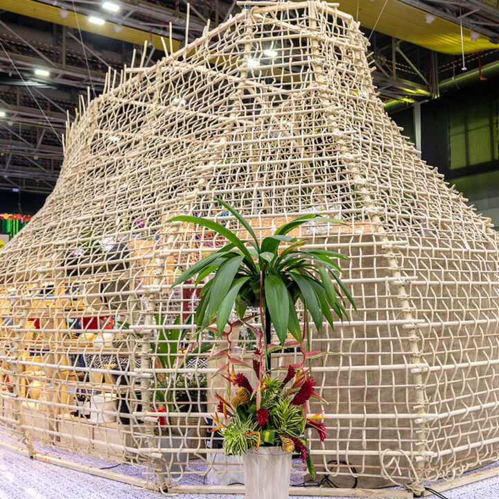 “Un tributo a los artesanos del Atlántico”, fue la premisa que nuestro cliente nos entregó al desarrollar este proyecto para la edición 2018 de Sabor Barranquilla. Fue así como construimos un canasto gigante con 8000 metros de cabuya y que, y cerca de 4000 metros lineales de madera pino. Un total de 15 artesanos de Galapa, XX diseñadores y XX arquitectos fueron los artíces de esta gran pieza tejida en vivo de 80 m2, que se robó la mirada de todos los asistentes a esta importante feria gastronómica de la región Caribe.