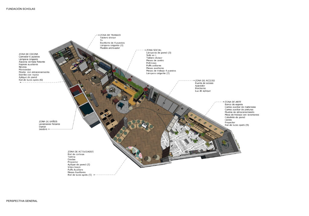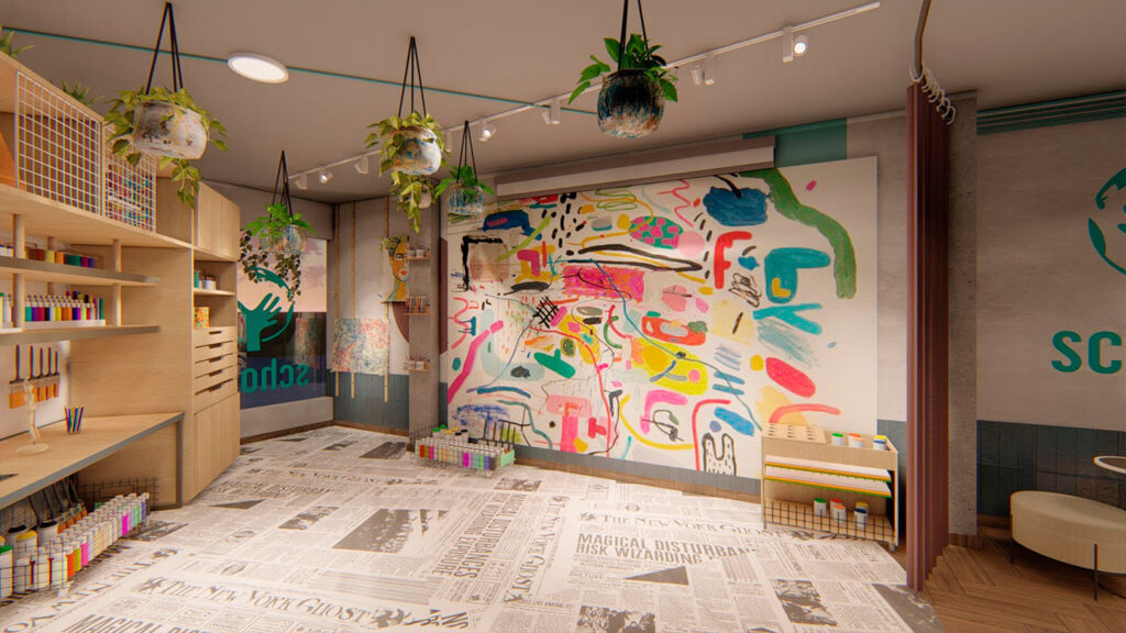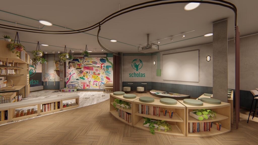 Cultura de Encuentro, es lo que sueña promover el Papá Francisco A través de Scholas, una Organización Internacional de Derecho Pontificio, presente es mas de 190 países para llegar a millones de jóvenes y niños, realizando actividades que integren el arte, el juego y el pensamiento. Estos 3 pilares de la organización fueron la inspiración para dividir la sede de Scholas Colombia.