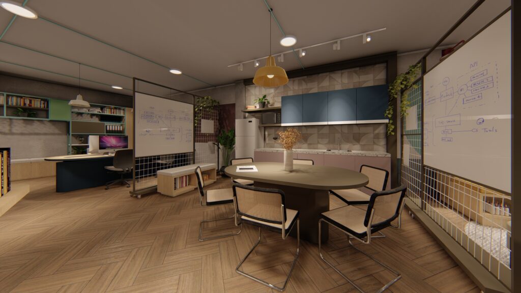 Para el Pensamiento ideamos una sala de juntas con calidez de hogar y en general donde hay reuniones se siente como en casa.